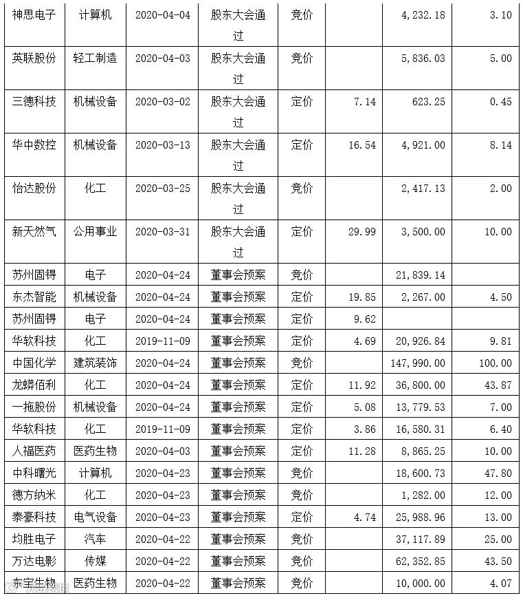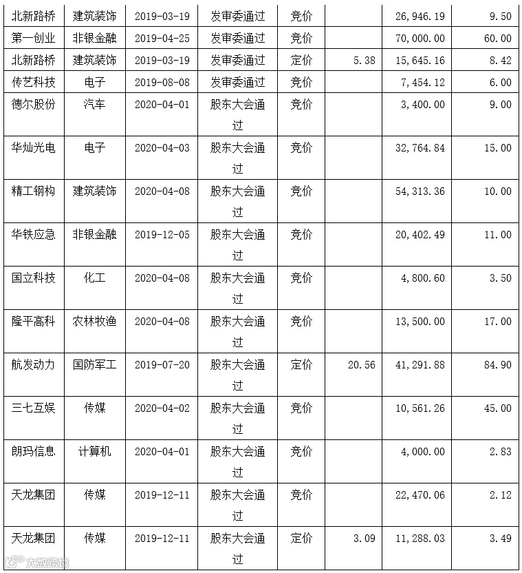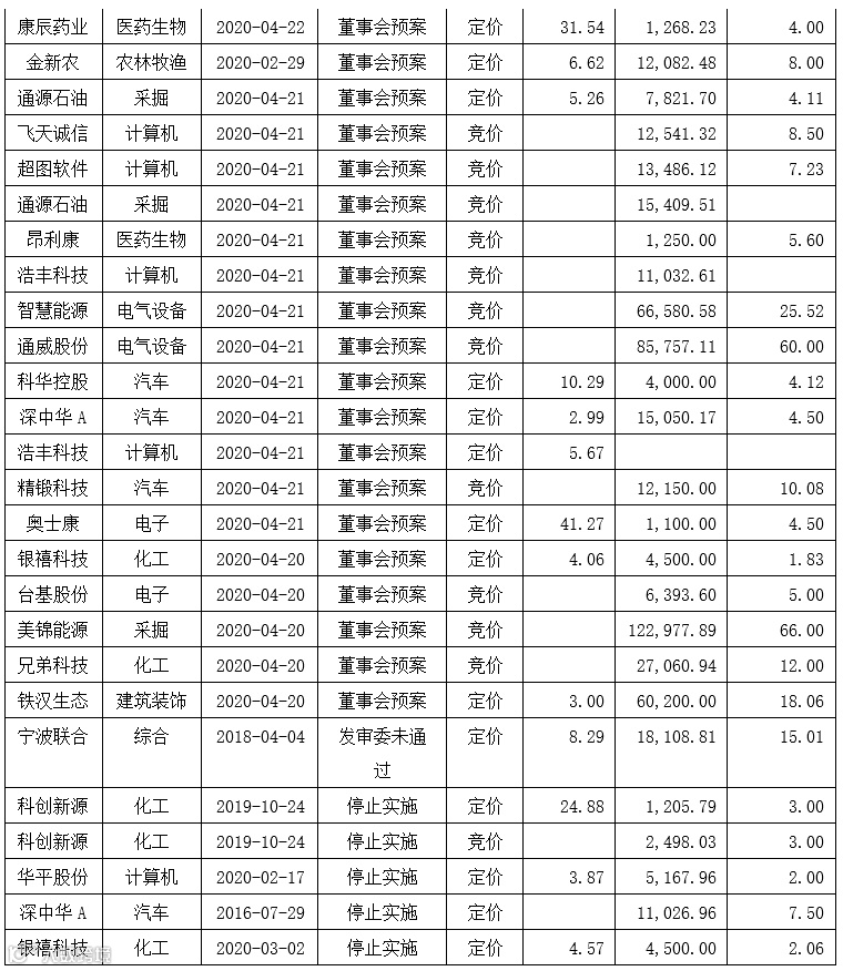本周(2020年4月20日-4月24日)A股市场公告定增项目(含新增及修订)共计84宗,其中,证监会核准5宗,发审委通过7宗,股东大会通过30宗,董事会预案35宗,发审委未通过1宗,停止实施6宗。
