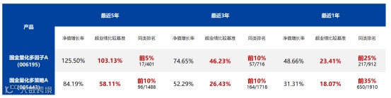 历史业绩是策略有效性的最有力证明。国泰海通证券《基金业绩排行榜》显示,截至2025年9月30日,国金量化多因子近5年收益率125.50%,超越基准103.13%,在401只同类产品中排名前5%;国金量化多策略近5年收益率84.19%,超越基准58.11%,在1488只同类产品中排名前10%。