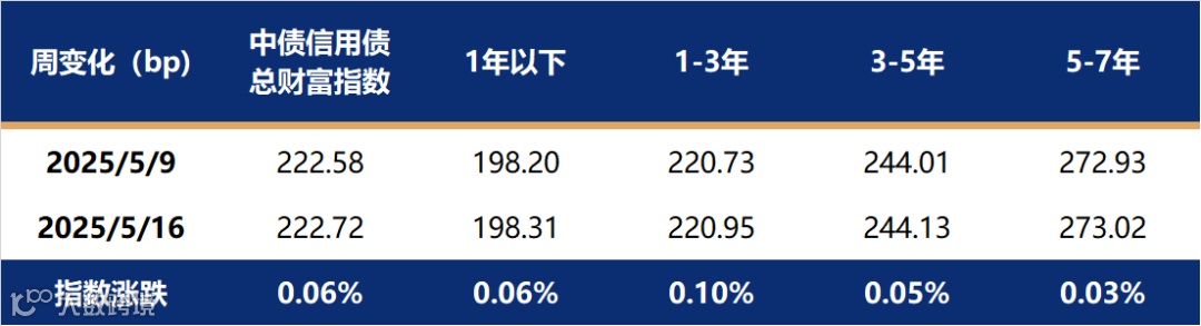 上周,信用债表现较强,收益率小幅下行,中债信用债总财富指数上涨0.06%,其中1-3年指数涨幅稍大。