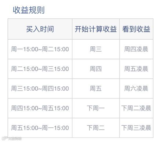 秘诀就在于将周末两天囊括进自己的购买周期,货基作为理财界的劳模,周末同样会产生收益,但是周末的收益需要待下个工作日来临才开始计算,隔天才能看到收益。举个例子:如果你从周一15:00前购入,一直到下周周三凌晨计提,那么你就可以坐享周末的两天收益;但是,假如你的投资周期间断,期间周六计提一次,下周一再重新申购,那么直到周三7个工作日的实际投资收益只有7天。