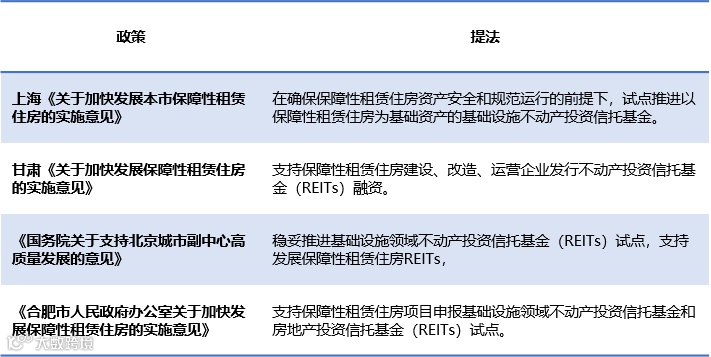 3、支持保障性租赁住房项目申报基础设施领域不动产投资信托基金(REITs)的说法被多次提及