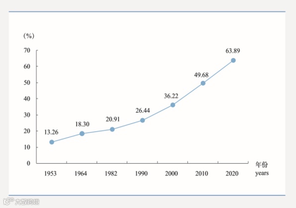 我国历次人口普查城镇人口比重