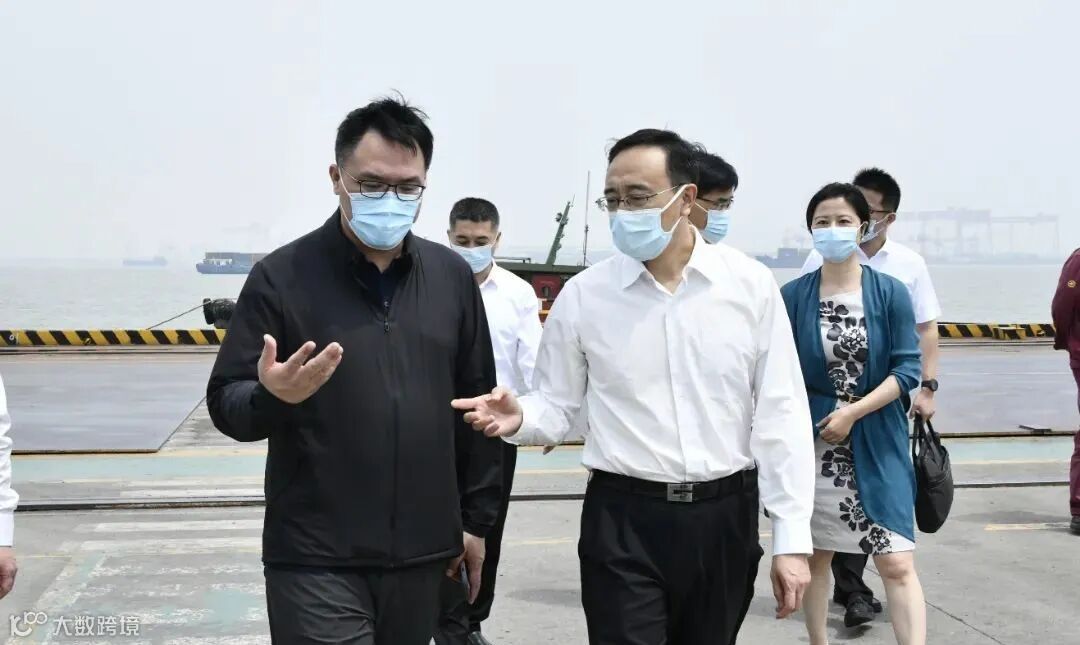 在沙钢海力9号码头,王飏一行驻足江畔,实地考察企业水运情况,了解沙钢产品结构及销售、清洁运输及超低排放实施等情况,对企业稳定、绿色、高质量发展成效表示肯定。