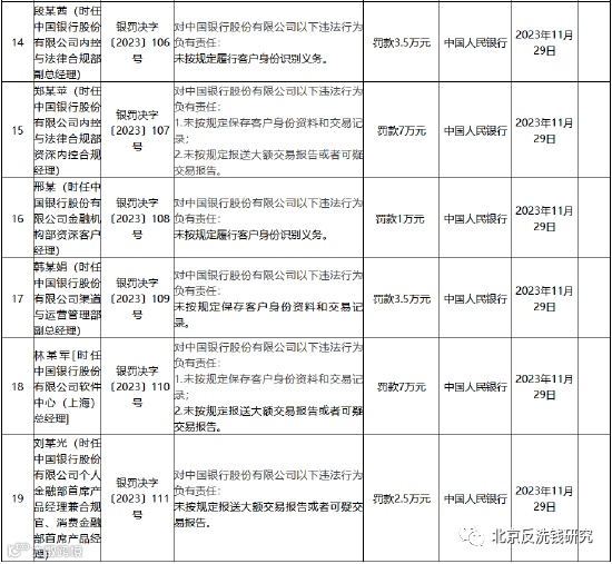 张某被罚款3.5万元,对中国银行未按规定履行客户身份识别义务负有责任。