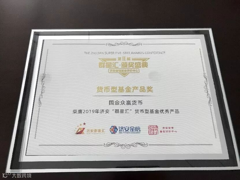 在2019年8月17日由济安金信基金评价中心主办的济安五星基金奖评选活动中,国金众赢货币基金荣获2019济安“群星汇”货币型基金奖,并在2019年一季度、二季度同时荣获济安金信基金评价中心给予的最高五星评级。