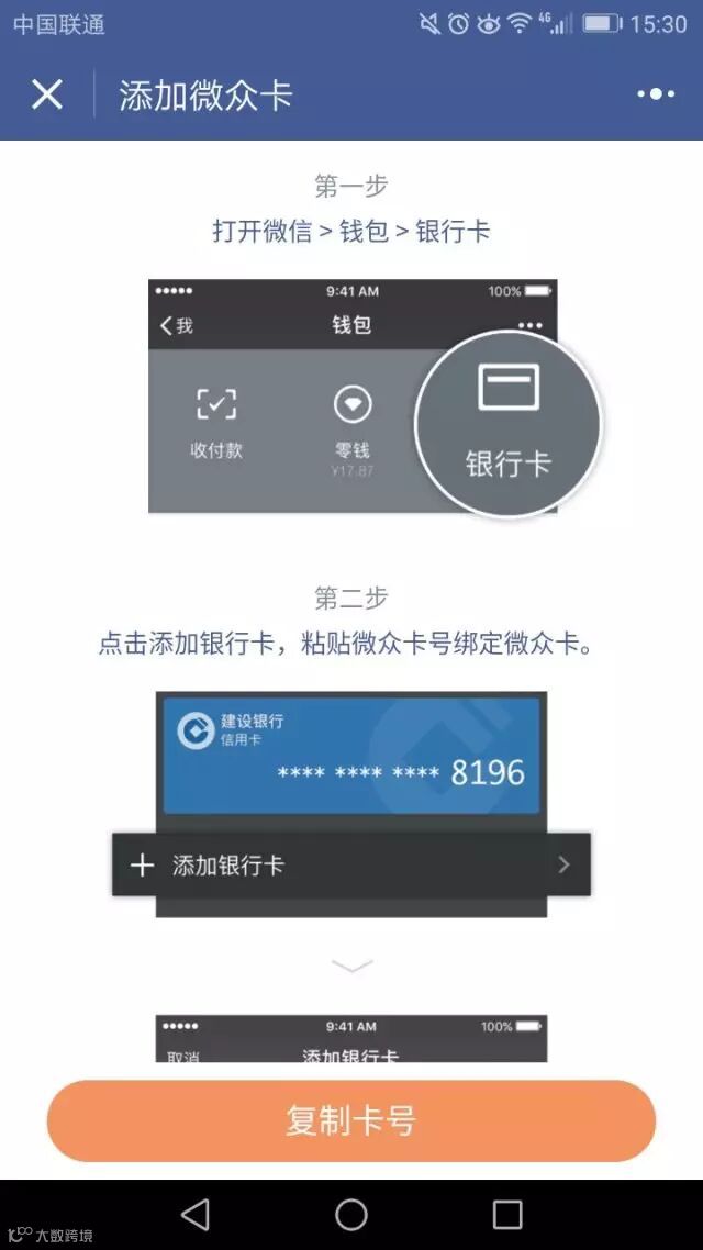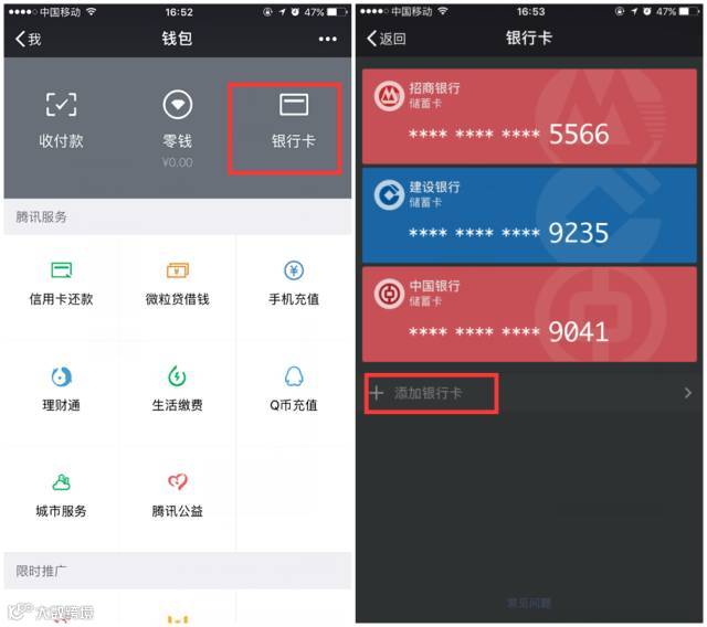 第三步:在微信钱包中点击银行卡-添加银行卡,填写相关信息即可完成绑卡。