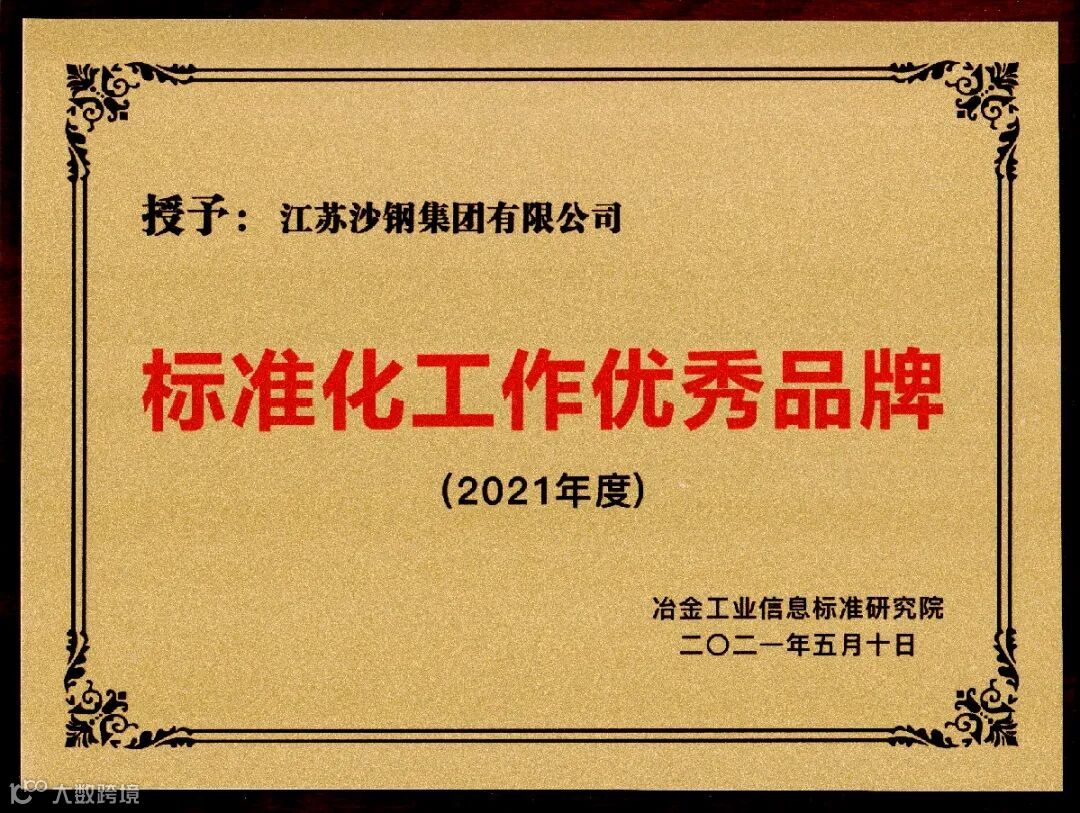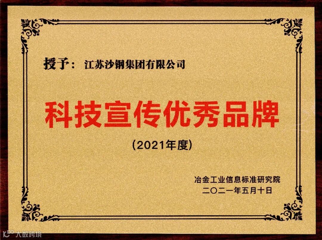 在中国冶金报社评选的2021年度中国钢铁品牌榜中,沙钢集团有限公司荣获“2021中国卓越钢铁企业品牌”,沙钢集团东北特殊钢集团股份有限公司获“2021中国特钢企业卓越品牌”。