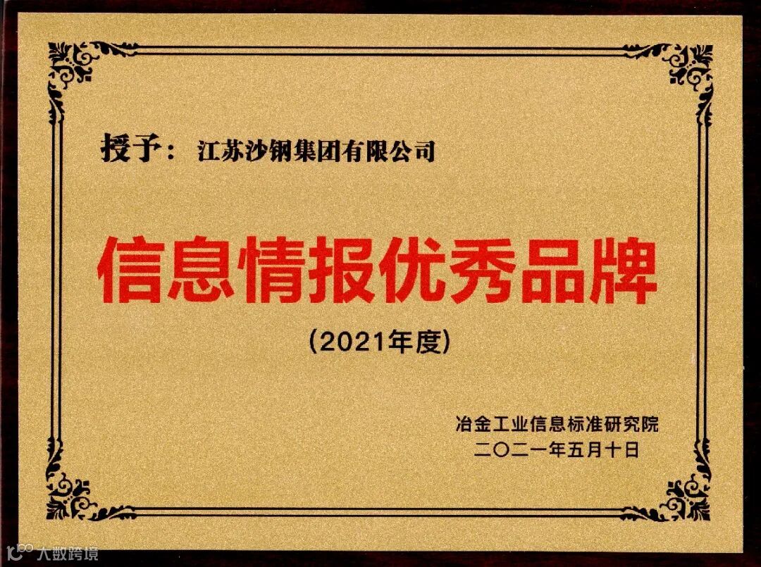 在冶金工业信息标准研究院“2021(首届)钢铁工业品牌质量发展大会”上发布的钢铁企业优秀品牌榜中,沙钢集团有限公司荣登“标准化工作优秀品牌”、“信息情报优秀品牌”、“知识产权优秀品牌”和“科技宣传优秀品牌”四项榜单。