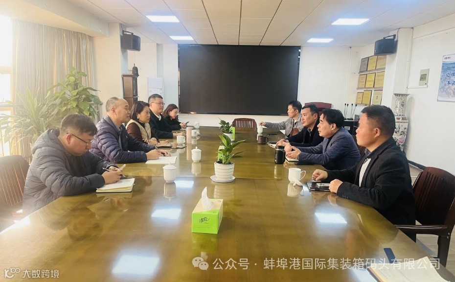 蚌埠港公司董事长、总经理张华山对调研组到访表示热烈欢迎,系统介绍了公司生产经营等情况,双方围绕“陆改水”业务、海铁联运班列、引江济淮工程及甬蚌对接业务拓展等方面进行了深入探讨。袁洪贤指出,蚌埠及周边地区资源丰富,发展潜力巨大,中远海运物流公司计划在蚌埠港公司设立办事处,进一步沟通交流,建立良好合作关系。