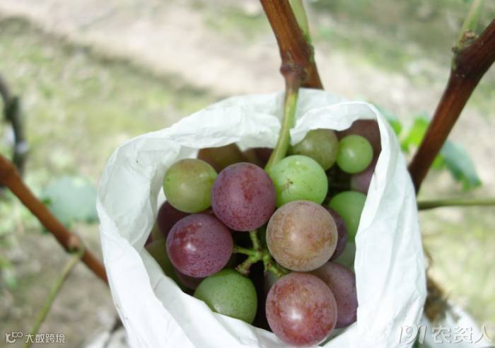 有的果农套袋过晚,80%果农不摘除果穗上边遮光的大叶片等。