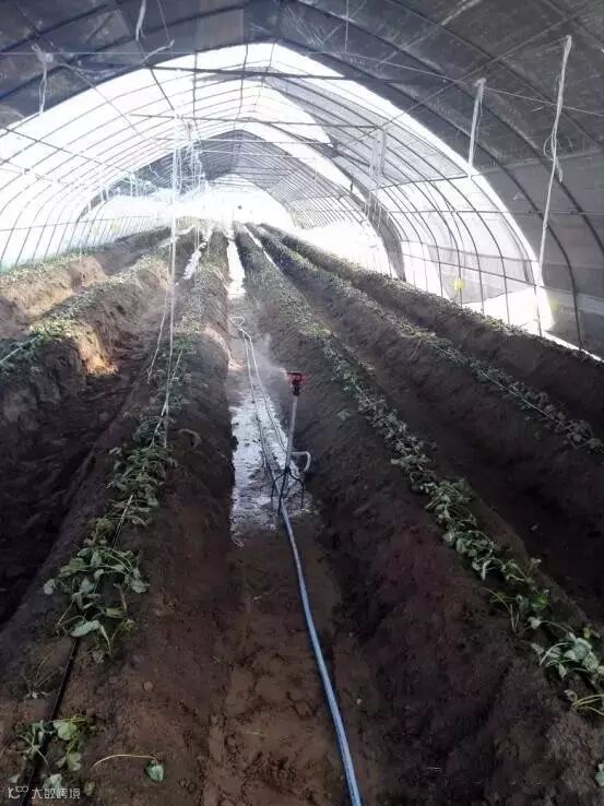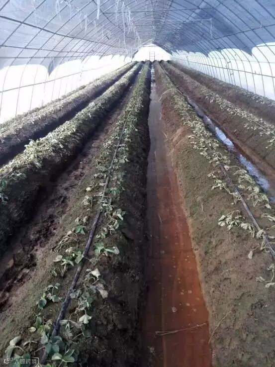 草莓园也不宜灌水太多,大雨过后要注意排水。因为土壤中水分太多就会导致通气不良,根系会加速衰老死亡,进而影响地上部分的生长发育;同时草莓的抗病性也降低。对于地势低洼地区,可采用台田栽培草莓。
