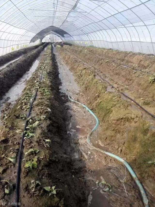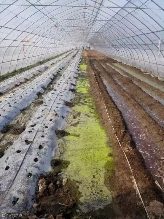 图5 过度的肥水,滋生绿藻、苔藓等微生物,阻碍草莓的生长