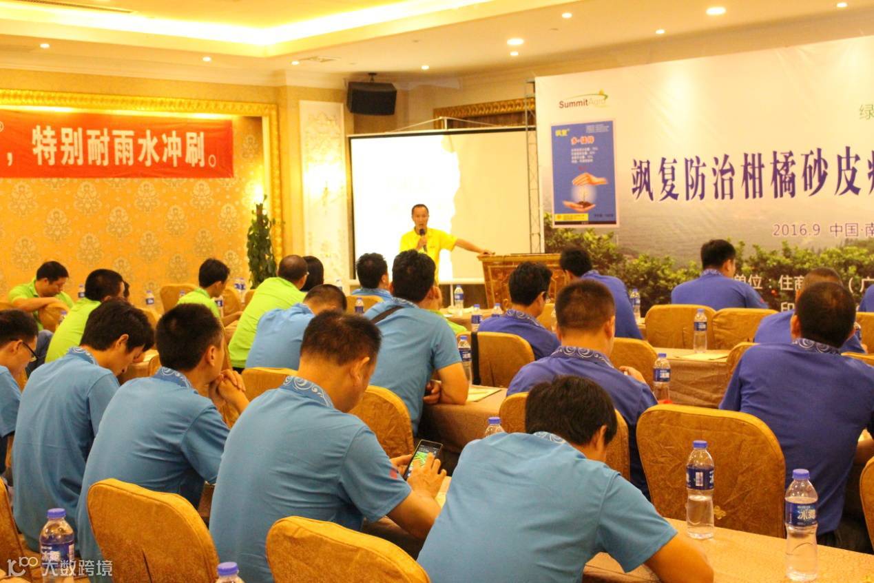 上午参观飒复示范园归来途中,大家都兴高采烈,津津乐道的相互沟通交流飒复在各自市场的使用习惯和表现。午餐过后,大家再次欢聚南丰国安大酒店会议室,进行砂皮病防治技术和经验交流。