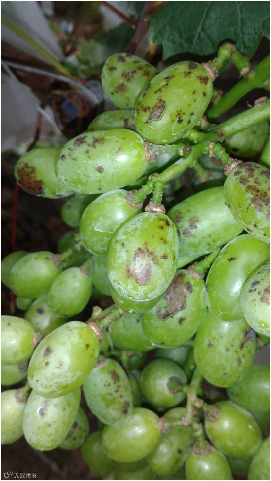 发病轻的,在葡萄接近成熟时小黑点会脱落,但果皮粗糙;在葡萄套袋后的一个月左右,果面上小黑点症状也会明显减轻,甚至看不出症状。