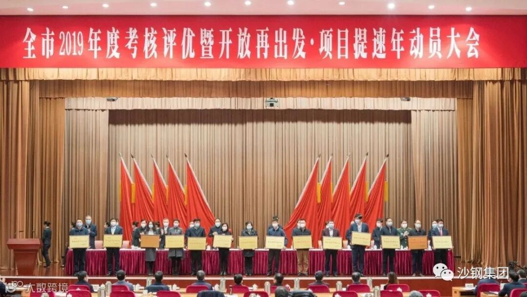 会议通报了优秀企业名单、2019年度绩效管理和精神文明建设考核结果并进行了表彰。江苏沙钢集团有限公司、玖隆钢铁物流有限公司、江苏沙钢国际贸易有限公司光荣上榜。