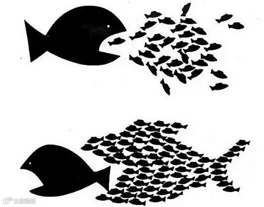 过去都说大鱼吃小鱼,小鱼吃虾米。如今早已不是大鱼吃小鱼的时代,而是快鱼吃慢鱼,群鱼吃大鱼的时代,不团结起来你永远成不了快鱼,这就是团队的力量。