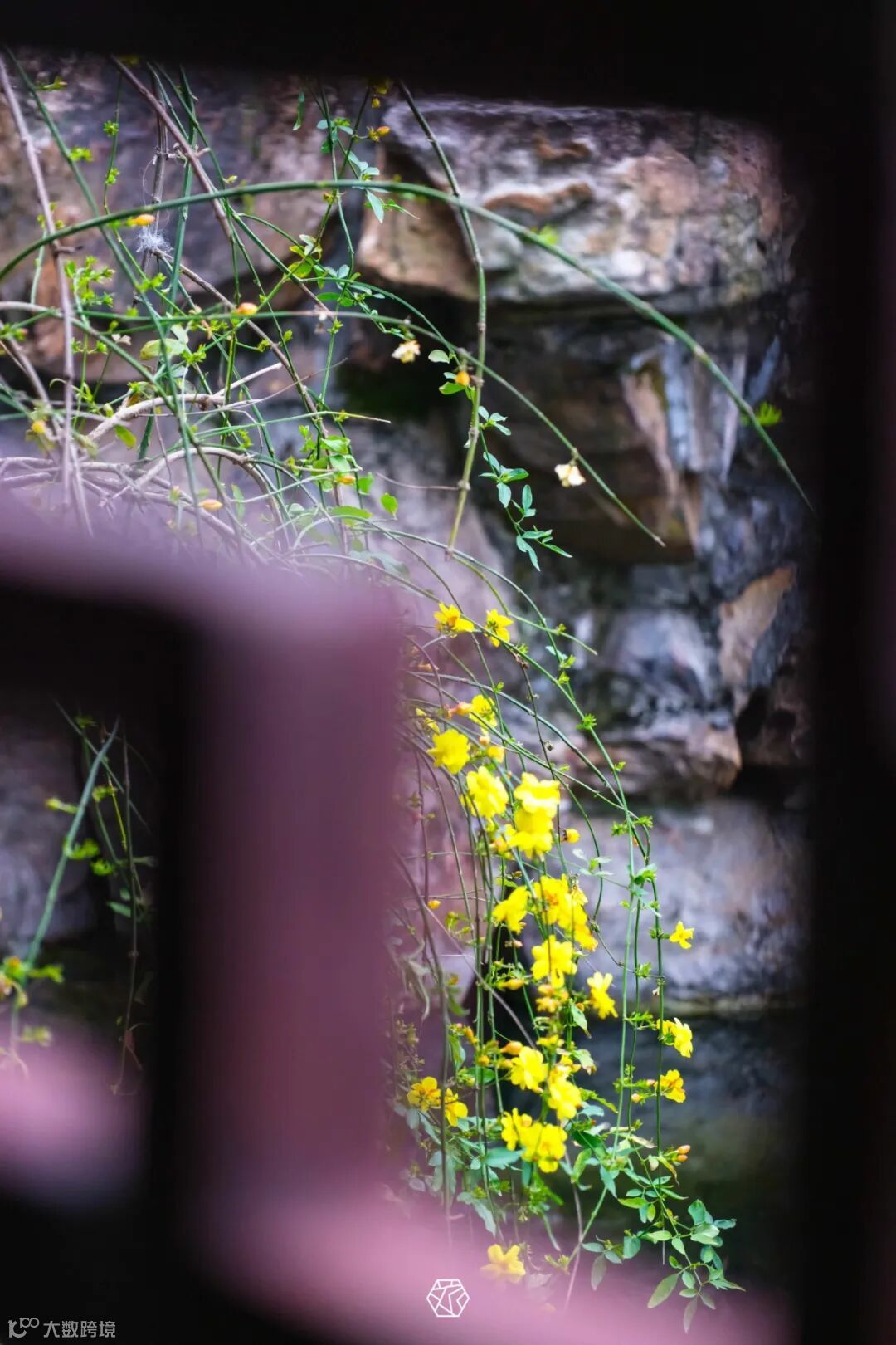 嶙峋假山间,山茶花开