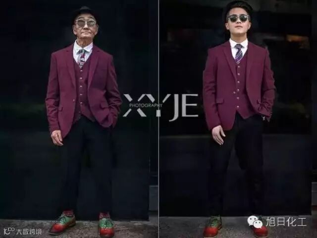 小野杰西认为,爷爷这范儿是模仿不来的,为此,他还特意做了一些他自己与爷爷的对比照,证明了还是爷爷的照片更有感觉。