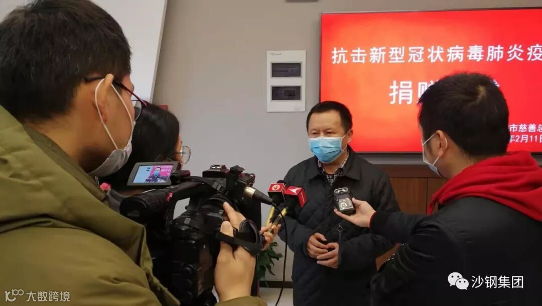 陈晓东在接受记者采访时表示,疫情发生后,沙钢集团在第一时间召开常委会,讨论捐助湖北疫情重灾区,第一时间通过国贸公司在罗马尼亚、土耳其、澳大利亚、韩国等多个国家抢购了10万只N95口罩、2万套防护服,并从国内紧急采购了医用床、呼吸机、雾化器等重点医用物资,送往湖北武汉等最需要的地方,为一线抗疫提供有力保障。
