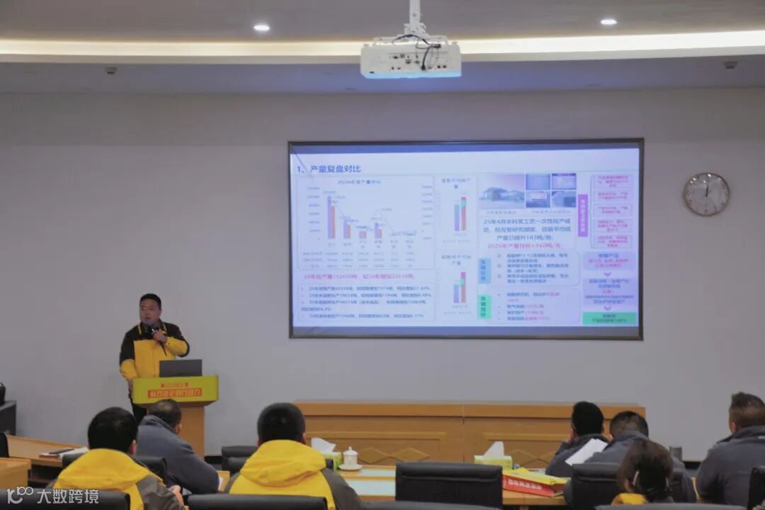 1月6日,轮台公司副总经理王凯华对2025年度的整体产销情况进行了全面回顾,围绕南疆区域销量达成、发货数据、市场反馈等重点内容作了系统汇报,并就过去一年在产品产能、质量提升、发货交期等方面取得的进展与存在的不足进行了深入分析。