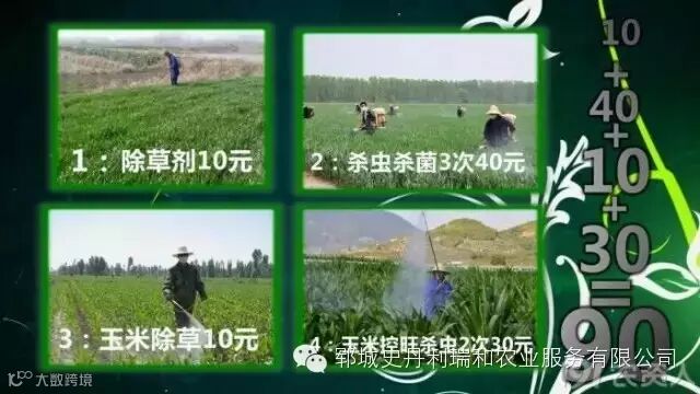 农药:小麦除草10元+3次防治40元+玉米除草10元+2次防治30元=90元