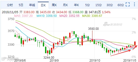 从日k线观察,螺纹钢期货2001经过9月中到10月中旬的震荡走弱后,10月下旬开始筑底回升,随着今日强力飙涨,行情反弹势头渐趋明朗。
