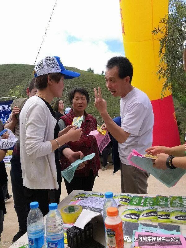 现场跟农户探讨产品、价格、使用方式。客户积极配合,活动有序展开。