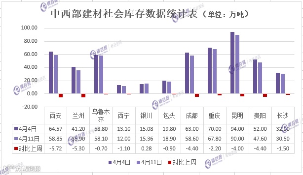 中西部建材社会库存连续四周下降,累降102.99万吨。本周总量减少29.94万吨至493.61万吨,降幅5.72%。本周除银川小幅增加外,其余城市全部下降。本周市场均在加大出货力度,西北建材库存减少13.44万吨至199.11万吨,降幅扩大,但西南建材库存减少16.5万吨至294.5万吨,降幅较上周缩小。目前为地条钢去除后第一个年头,库存数据增降幅均超出往年水平。目前需求稳步释放,特别是清明节后,市场成交活跃,周一、周二的销量持续放大,库存下降速度或仍将保持高位。