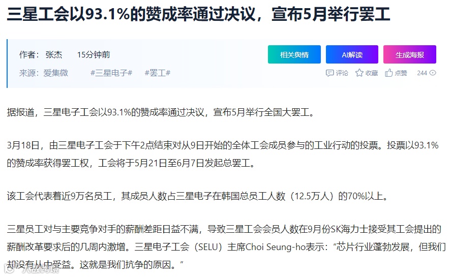 韩国那边有传来新的消息,行业巨头三星电子5月可能被迫停工,这可能进一步加剧存储供应的紧张。