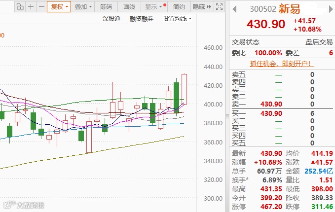 快刀反复谈到的光模块龙头新易S,今天放量大涨10.7%!!!