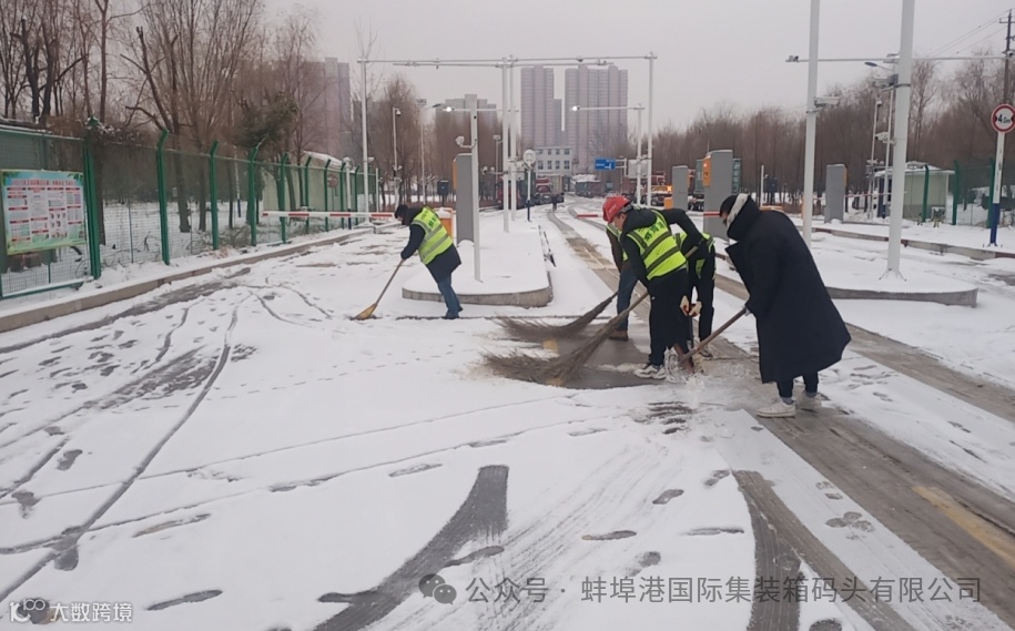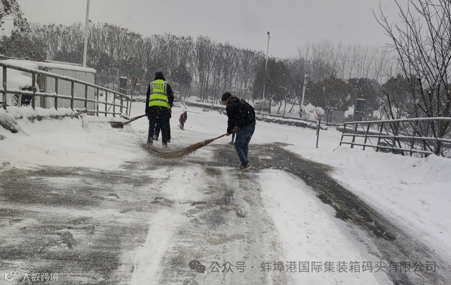 2月4日起,我市出现新一轮强降雪伴随气温大幅下降,受天气影响,公司办公及作业范围内被厚厚的积雪覆盖,给员工及各驻港单位出行、交通带来诸多不便,公司领导班子以雪为令,迅速行动,组织全体职工及时清除积雪,确保交通安全。