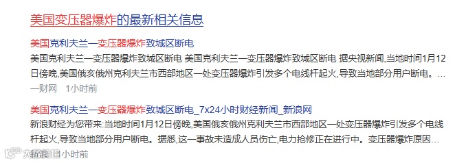 ②近五天,美国接连出现两大变压器爆炸&火灾事故;
