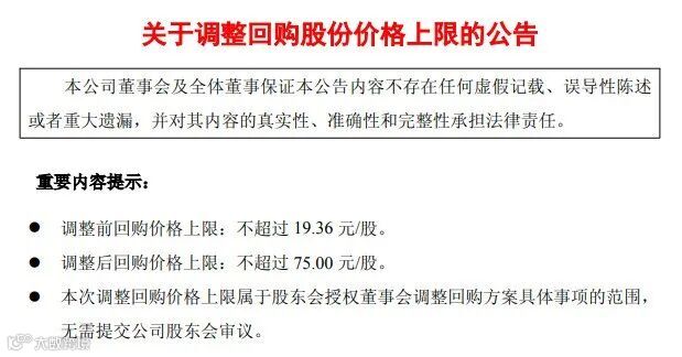 将回购价格上限从19.36元/股提升至75元/股,增幅达287.4%。