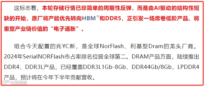 存储的逻辑快刀在11月5日今天,加仓了这个方向!一文中有重点介绍。当时考虑到很多刀粉可能尚未开通创业板和科创板,故选择了主板的兆YC新。