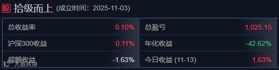 由快刀本人亲自主理的“拾级而上”股票组合(组合详见今天,首次开仓!)当日净值+1.63%至1.001。