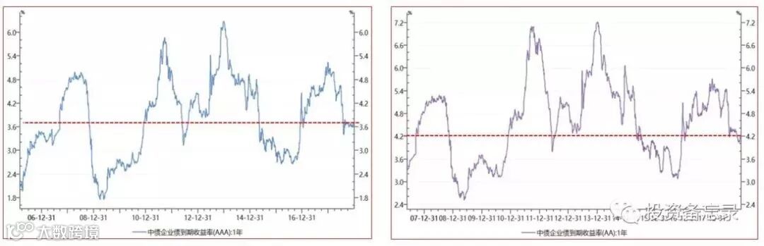 但是,经历了一年的牛市之后,收益空间必然会有所收窄,从短债基金主投的1年期AAA及AA级信用债的收益率水平看(如下图),相比于上一轮的收益率低点,目前已经下行超过一半。因此,看好的债市的同时,对于未来的收益预期应该有合理判断。