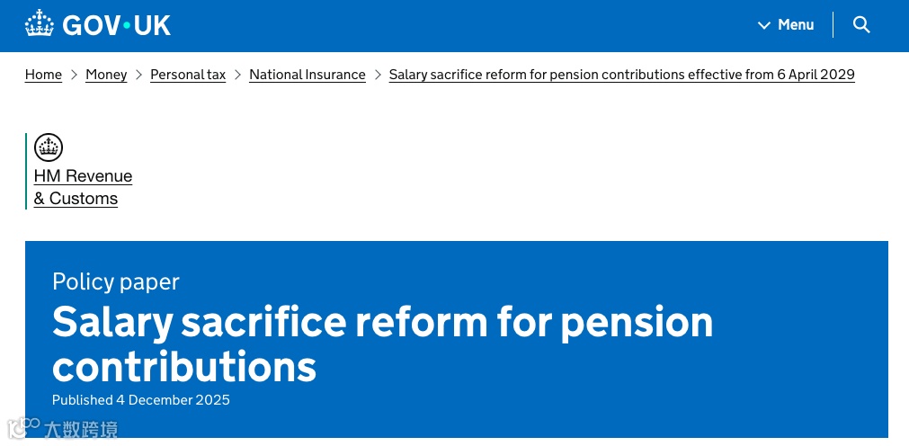 英国最新秋季预算案中,对“薪资牺牲”(Salary Sacrifice)缴纳养老金的国民保险(NI)免缴额度设定了2,000英镑的年度上限。