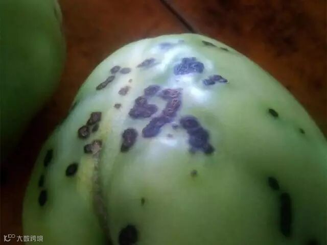 专家答:这是细菌性疮痂病危害的果面,建议从叶面发生时就要预防和控制,方可避免感染果实,造成损失。像图片的果实就救不回来了,但是当植株零星发生时,可用72%农用链霉素或2%中生菌素、20%噻菌铜、56%喹啉铜、2%叶枯唑、50%氯溴异氰尿酸、72%可杀得等药剂,根据病害的严重程度,两者混配使用,进行喷雾,在交替用药间隔4-5天,连打3遍,可以预防。最关键的一点是注意膨果期补充钙肥,避免果面产生伤口,没有伤口细菌就很难侵染。