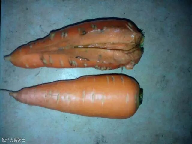 问:胡萝卜头大尾巴小而且裂开很大的口子,这是为什么?