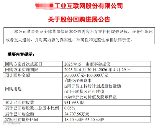 今天盘后,“工业”发布的公告显示,截至11月30日累计回购股份931.99万股,使用资金总额2.47亿元。