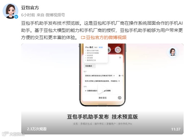 今天上午,豆包手机助手发布技术预览版。这玩意儿相当于是一个能力更强的手机版的智能助手。用户可以通过语音直接命令它,完成各种手机操作(比如定闹钟、发信息)。