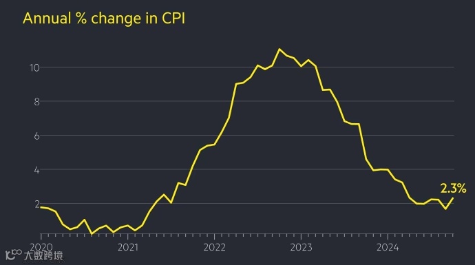 英国10月通胀率上涨至2.3%,央行降息或放缓