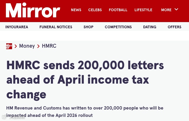 英国税务局HMRC近日已向超过20万名纳税人寄出官方信函,提醒其即将受到一项关键税制改革影响——所得税数字化申报(Making Tax Digital for Income Tax,简称 MTD)。随着MTD正式实施日期临近,年毛收入超过5万英镑的个体经营者和房东,将从2026年起被强制纳入该体系。