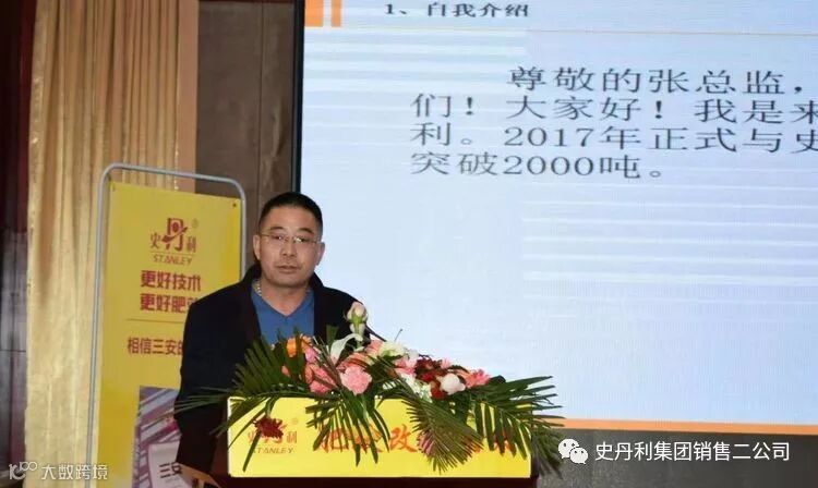 史丹利始终与激情、跨越、创新、共赢保持一致,始终以“共创美好农业”为己任,服务大农业为方向,始终以坚实的脚步一直走在复合肥行业的最前列。有改革、有创新、才有更大的发展!史丹利农业集团股份有限公司销售总监张宗礼做了重要讲话!
