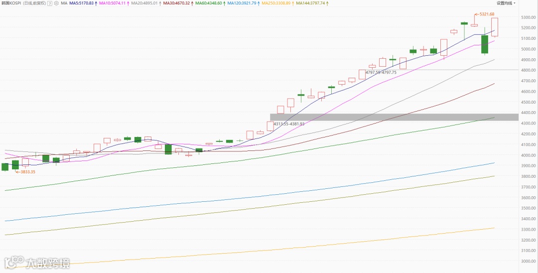 隔壁日韩股市也全线大涨,不仅收复周一大跌失地,还逼近历史新高。