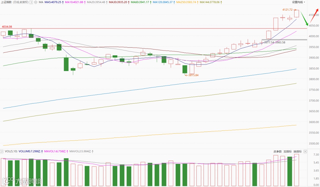 短期考虑到市场情绪达到“极度贪婪”水平,偏离“慢牛”定调,此处谨慎看多。从沪指结构来看,短期回踩前期4034高点,可能是一个不错的机会。