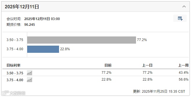首先是外部,随着美联储频繁释放“鸽派”信号,12月降息25bp的概率,已从一周前的约40%,飙升至近8成。这也预示着,海外流动性危机暂告一段落;