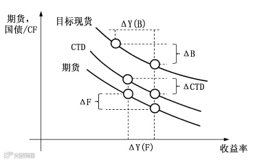 对于第一种情况,CTD没有发生改变,计算ΔF和ΔB时,只需根据ΔY的实际大小进行调整即可。第二种情况比较复杂,由于CTD发生改变,计算ΔF时需要将ΔY(F)拆成新旧CTD两部分,分别根据不同的CTD的基点价值进行计算。