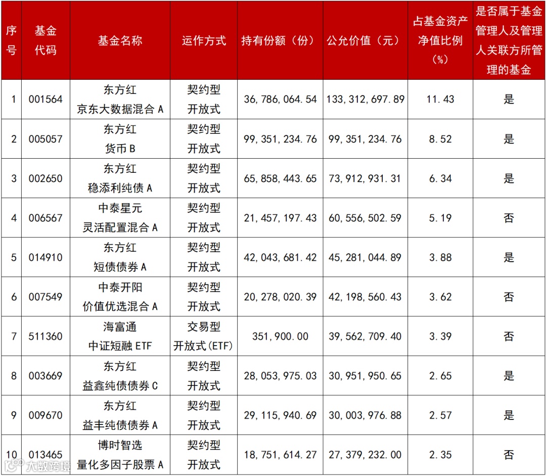 数据来源:东方红颐和稳健养老两年FOF2025年三季报,仅供参考,不够成投资推荐。