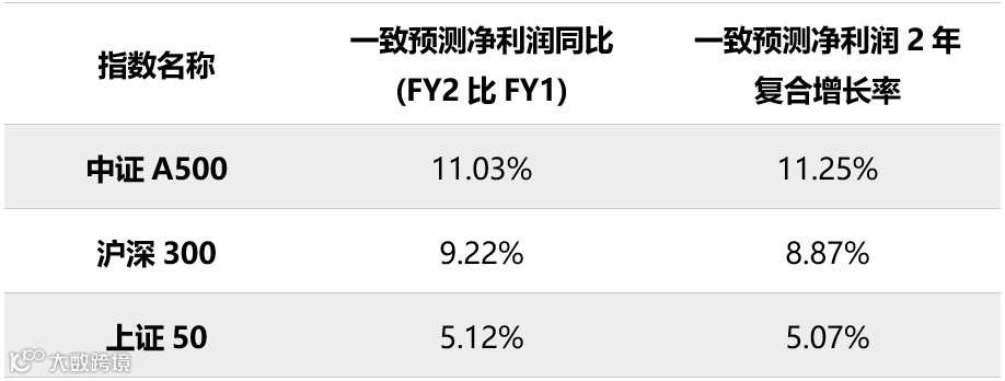表:中证A500预测净利润增速较高